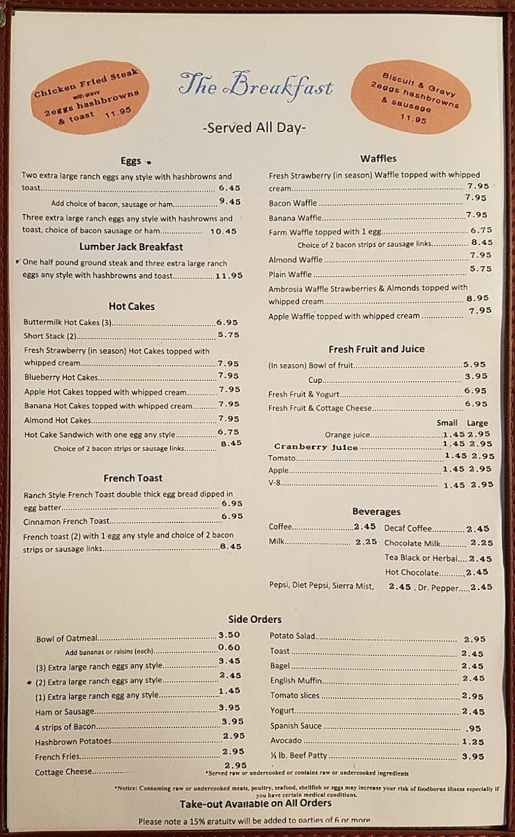 The Cook House takes pride in serving hearty, comforting breakfasts that leave you satisfied and smiling. The menu features a variety of mouthwatering dishes, perfect for any palate. Start your day with the Two Extra Large Ranch Eggs Any Style, complemented by crispy, golden hashbrowns and perfectly toasted bread for just US$8.95. For those who crave a little more, the Lumber Jack Breakfast delivers a satisfying feast with a generous half-pound of ground beef, three farm-fresh eggs, and all the hashbrowns you can handle, all for US$16.95.