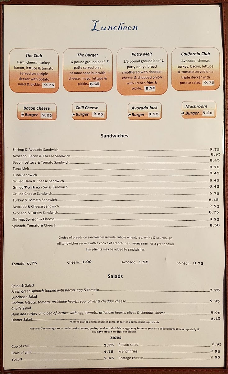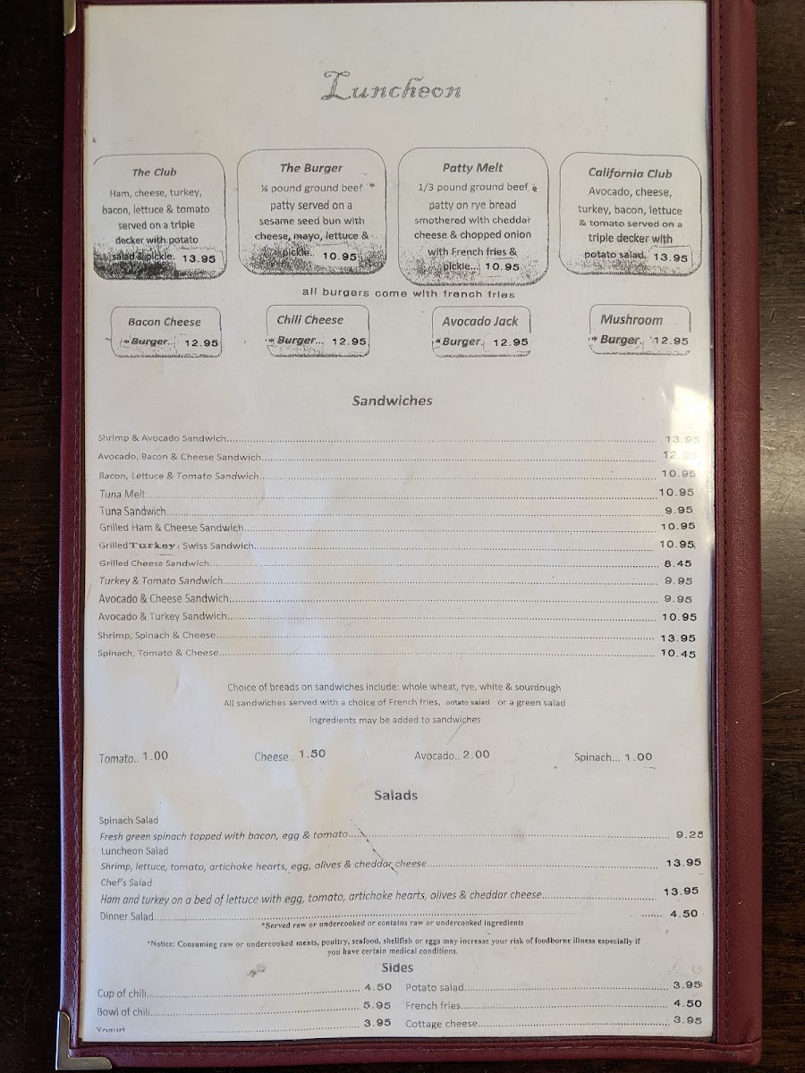 Fresh salads provide a lighter option as well, such as the refreshing Luncheon Salad, brimming with shrimp, artichoke hearts, and creamy cheddar cheese, priced at US$13.95. Each dish is crafted with care and served in generous portions, giving diners a taste of authentic comfort food reminiscent of family gatherings.